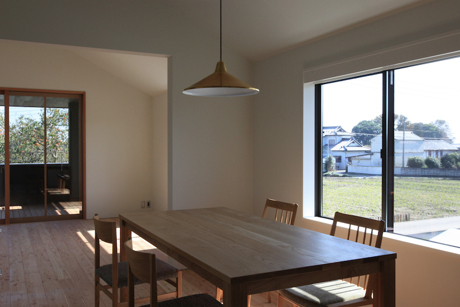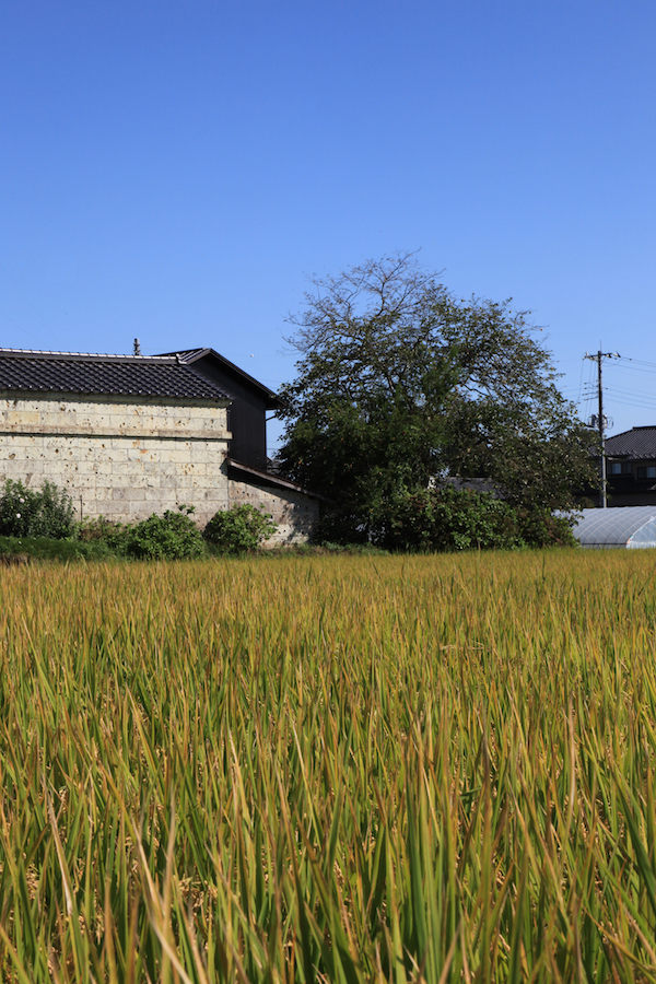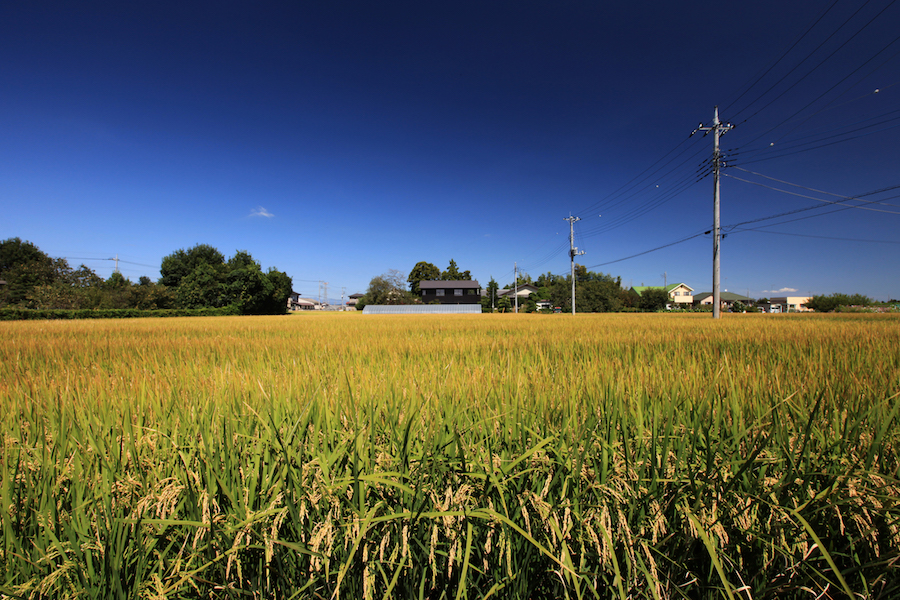 田んぼが広がる風景の中にある住宅です。